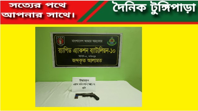 রাজবাড়ীর গোয়ালন্দে র্যাব-১০ এর অভিযানে দেশীয় তৈরি ওয়ান শুটার গান ও গুলি উদ্ধার