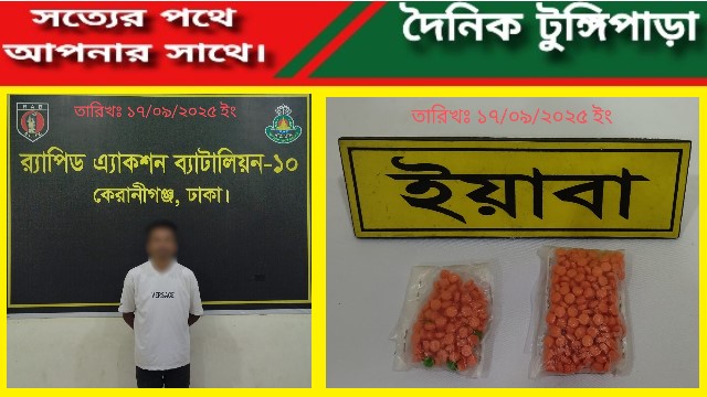 মুন্সিগঞ্জ শ্রীনগরে ৩৪৫ পিস ইয়াবা সহ ০১ জন মাদক ব্যবসায়ীকে গ্রেফতার করেছে র্যাব-১০